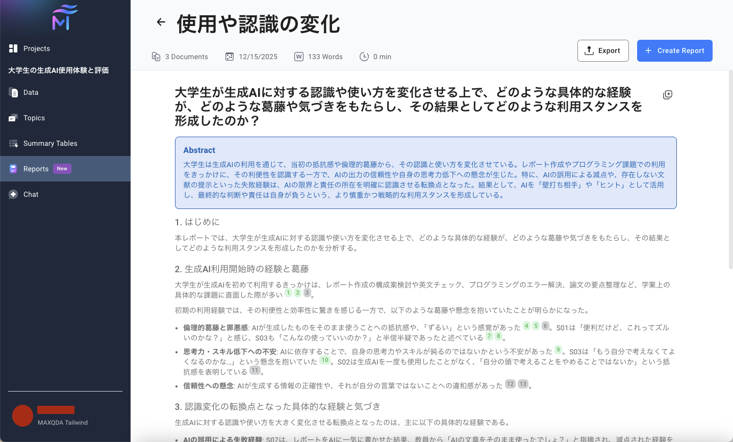 2026年1月26日 / 最終更新日時 : 2026年1月26日 saso Tailwind_report 質的データ分析研究会の最新情報を受け取る月1~2回、本サイトの更新情報、質的研究や混合研究法、ツールの使い方、イベント情報などEmailで受け取ることができます。 最新情報を受け取る