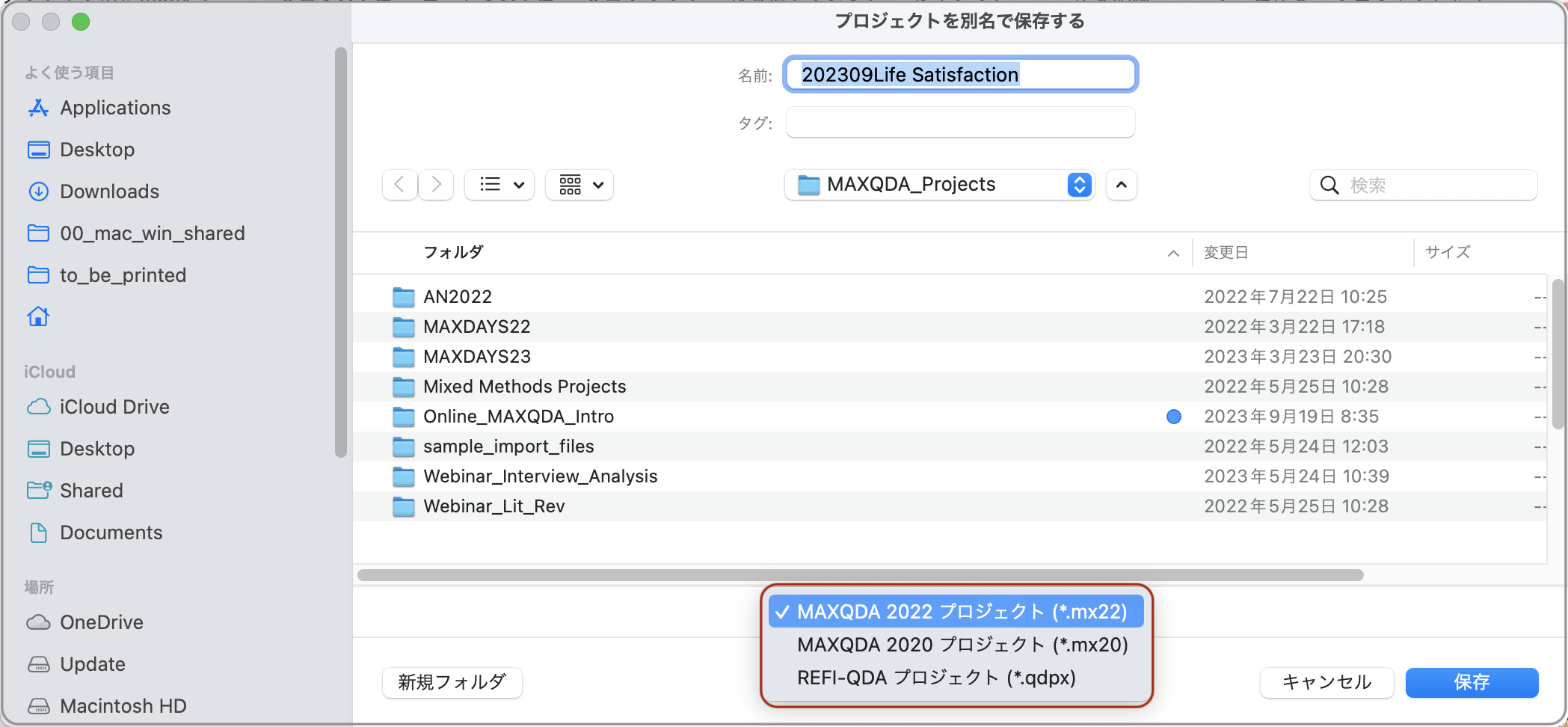 - MAXQDA 2022ファイル(*.mx22 – 一つ前のバージョンユーザーとも共有できます)